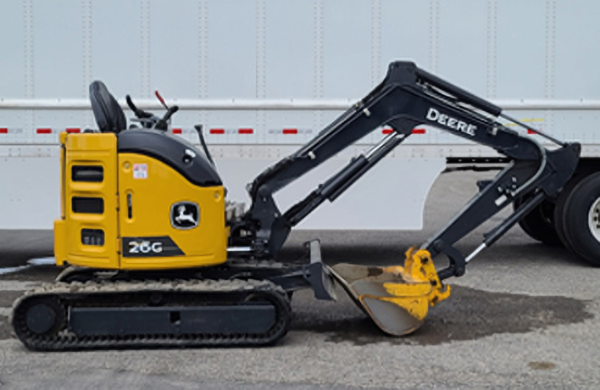 La mini-excavatrice John Deere 26G offre rotation à 360°, chenilles caoutchouc 300 mm et moteur diesel Tier 4 pour des chantiers compacts efficaces. 1357_f34a7b-20> |